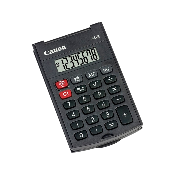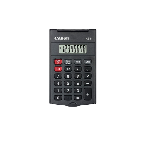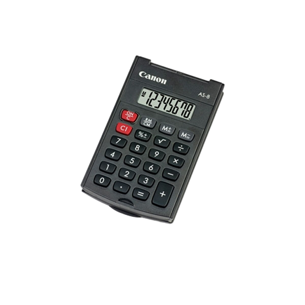 La Calculadora Canon AS-8 HB de bolsillo es pequeña pero pero resolutiva. Diseño compacto con pantalla de 8 dígiutos y tapa de protección frontal abatible.