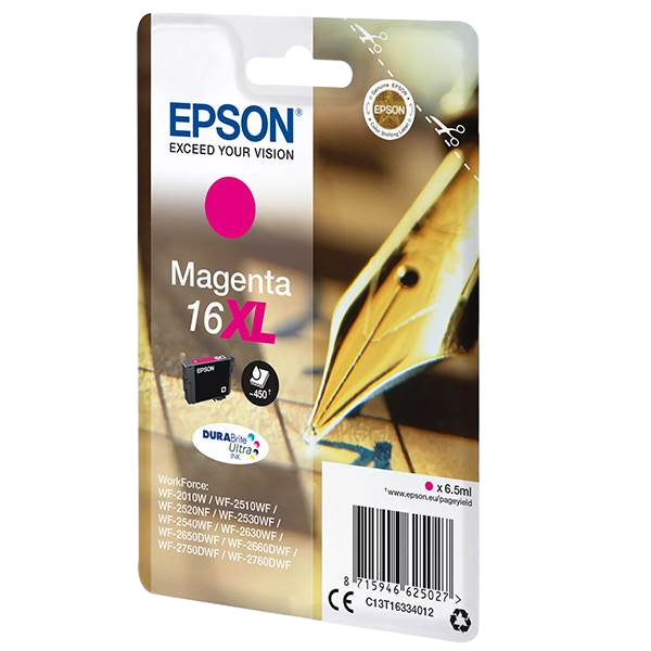 Cartucho de impresión original Epson tamaño XL – 1 x magenta 450 páginas – Válido para impresoras Epson WorkForce WF-2010W, WorkForce WF-2110W, WorkForce WF-2510WF, WorkForce WF-2520NF, WorkForce WF-2530WF, WorkForce WF-2540WF, WorkForce WF-2630WF, WorkForce WF-2650DWF, WorkForce WF-2660DWF, WorkForce WF-2750DWF, WorkForce WF-2760DWF