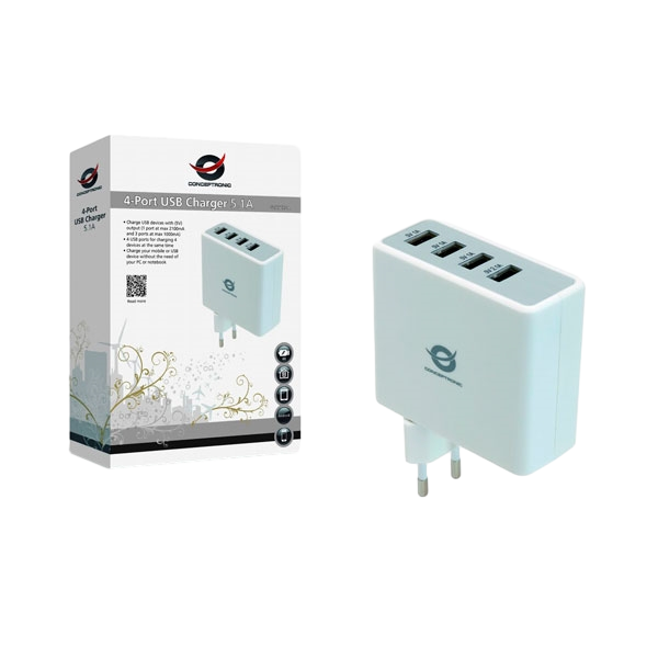 Conceptronic 5V 4xUSB (3x1A y 1×2.4A) a shucko – Adaptador