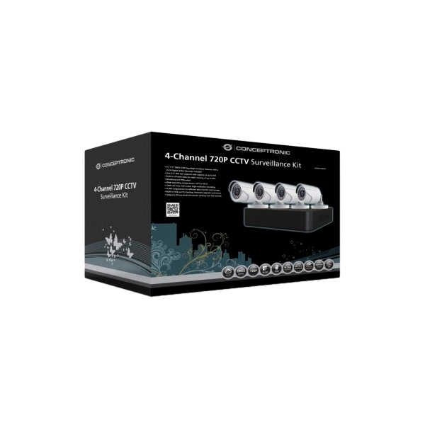 El Kit de vigilancia CCTV profesional de 8 canales de Conceptronic ofrece una forma ideal de supervisar una casa grande o edificios, para situaciones que requieran vigilancia de ámbito profesional. Con cámaras de alta definición de calidad excelente colocadas en todos los laterales del edificio, se pueden vigilar todos los puntos de acceso de forma segura en todo momento, tanto de día como de noche. Gracias a un software sofisticado, puede supervisar fácilmente las ocho cámaras desde cualquier equipo de sobremesa, portátil, tableta o teléfono inteligente. Todas las cámaras cumplen el estándar de impermeabilidad IP66 y funcionan a temperaturas comprendidas entre -10 °C y 55°C. Los LED infrarrojos integrados admiten supervisión nocturna para distancias de hasta 20 metros, proporcionando imágenes nítidas en cualquier momento y condición. Las cámaras de gran calidad también ofrecen grabación y reproducción en alta resolución a pantalla completa. Todo lo que necesita para conseguir una vigilancia segura de su hogar o negocio, lo que proporciona máxima tranquilidad.