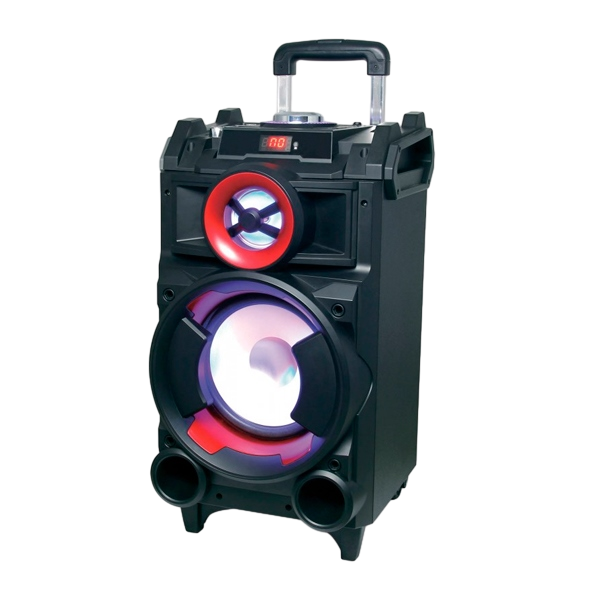 El Altavoz inalámbrico para fiestas es un altavoz multimedia Bluetooth que se conecta de forma inalámbrica a un teléfono móvil Bluetooth, unidad PDA, equipo portátil o PC. Se trata de un altavoz de alta sensibilidad con circuito magnético ultragrande con alta potencia de penetración, impacto de baja frecuencia y representación perfecta de frecuencias medias y altas. Con el asa que se puede alargar y ruedas en la parte inferior para facilitar el transporte, el altavoz siempre estará preparado para la fiesta allá donde se encuentre. Admite entrada de micrófono, controles de volumen y de resonancia, con modo de prioridad para el micrófono y grabación de entrada de micrófono, lo que le permite actuar como ayudante profesional tanto para uso en fiestas como empresarial.