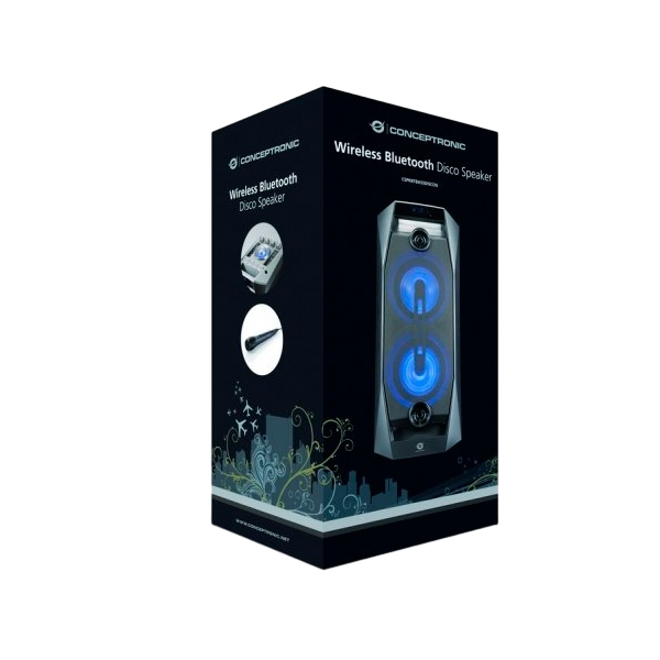 El Conceptronic Altavoz de discoteca inalámbrico es un altavoz multimedia Bluetooth que se conecta de forma inalámbrica a un teléfono móvil Bluetooth, unidad PDA, equipo portátil o PC. Se trata de un altavoz de alta sensibilidad con circuito magnético ultragrande con alta potencia de penetración, impacto de baja frecuencia y representación perfecta de frecuencias medias y altas. El altavoz es perfecto para actividades al aire libre como acampadas, fiestas, barbacoas en la playa o donde la vida te lleve. Admite entrada de micrófono, controles de volumen y de resonancia, con modo de prioridad para el micrófono y grabación de entrada de micrófono, lo que le permite actuar como ayudante profesional tanto para uso en fiestas como empresarial.