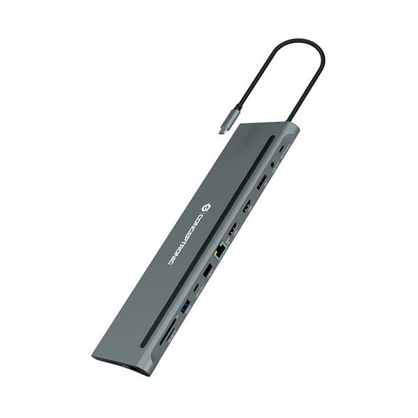 Conceptronic DONN17G 12-in-1 USB 3.2 Gen 1 Triple 4K Display, 100W USB PD, HDMI x 2, DisplayPort, Gigabit LAN, USB-A 3.0 x 2, USB-A 2.0, USB-C Data, SD, TF/MicroSD, Audio – Docking Station