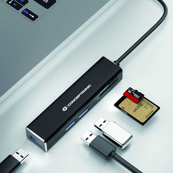 Conceptronic HUB 3 Puertos USB 3.2 Lector – Adaptador