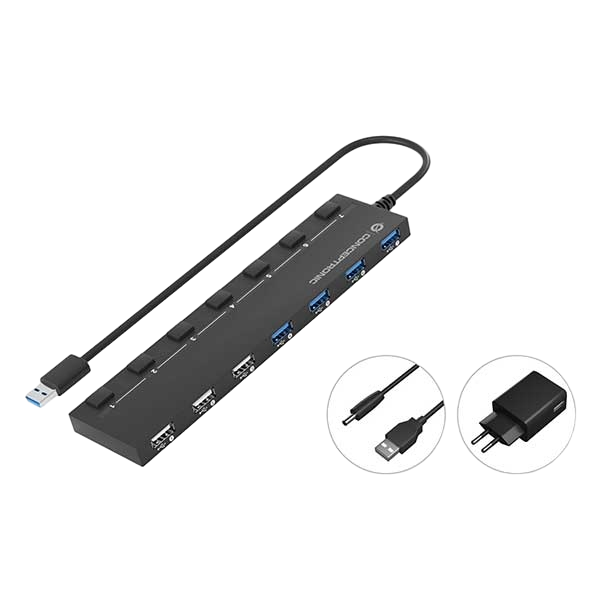Conceptronic HUB 7 Puertos USB Alimentado – Adaptador
