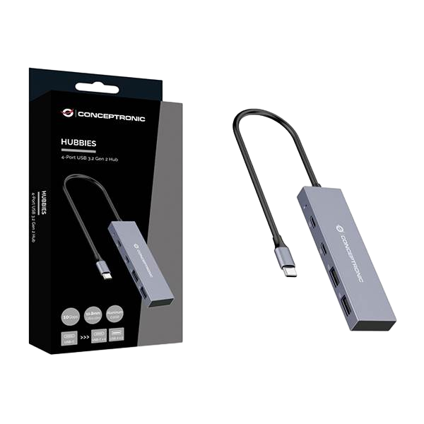 Conceptronic HUBBIES13G 4-Port USB 3.2 Gen 2, 10Gbps, USB-C x 2, USB-A x 2, Aluminum Case – Adaptador HUB