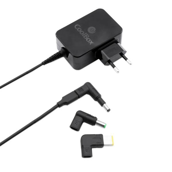 El CoolBox alimentador universal 65W incluye 14 puntas diferentes, lo que garantiza su compatibilidad con una amplia gama de modelos y marcas de ordenadores portátiles, incluso aquellos que no disponen de puerto de carga USB-C. Además, cuenta con selección automática de voltaje de salida, lo que permite adaptarse a los diferentes dispositivos a cargar sin necesidad de ajustes manuales.