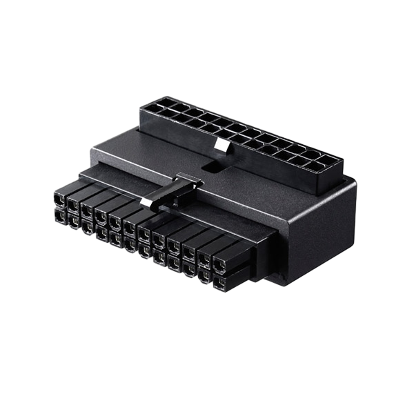 El adaptador ATX 24 Pin 90 ° ofrece la posibilidad de conectar su cable de alimentación principal de 24 Pin a su placa base en un ángulo de 90 °. Este adaptador universal funcionará con cualquier placa base ATX estándar para otorgarle a su sistema opciones adicionales de administración de cables. Viene con condensadores incorporados para reducir la ondulación en el cable de alimentación principal, agregando una capa adicional de estabilidad a la salida de corriente que conduce a su placa base.