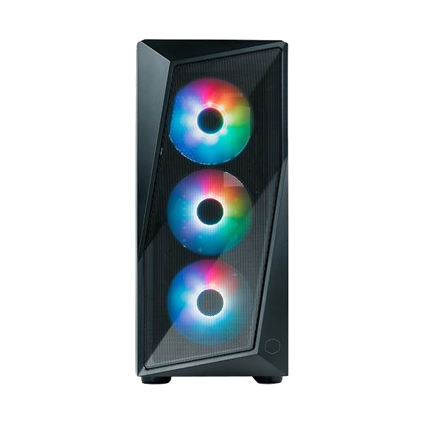 El diseño del panel frontal asimétrico del CMP 520 que enmarca los tres ventiladores ARGB de 120 mm que estan preinstalados como piezas centrales únicas en al construcción. Ademas de tener tres ventiladores ARGB de 120 mm, tambien tiene un panel frontal de geoda de malla, opciones de enfriamiento versatil, un reversentimiento negro completo, y una cubierta para la fuente de alimentación transpirable.