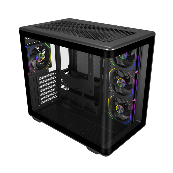 La versatilidad en refrigeración es uno de sus puntos más fuertes. La Elite 600 permite instalar hasta 10 ventiladores y múltiples radiadores en posiciones superior, inferior, lateral y trasera, ofreciendo una libertad total para configuraciones de aire o refrigeración líquida personalizada. El amplio espacio interior y la distribución inteligente garantizan compatibilidad con coolers de CPU de hasta 160 mm y fuentes de alimentación de hasta 240 mm. Es un gabinete diseñado para entusiastas que buscan las últimas novedades. Cada detalle desde la doble cámara interna, la iluminación ARGB y el soporte para hardware de gama alta está pensado para ofrecer una experiencia de construcción premium.