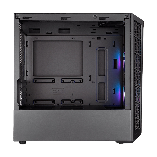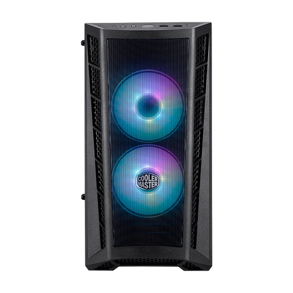 El MasterBox MB311L ARGB es un estuche para PC con flujo de aire Micro-ATX preinstalado con dos ventiladores ARGB y diseñado para ser construido con el último hardware para juegos. La fachada del panel frontal está hecha completamente de malla fina, colocada entre dos ventilaciones en forma de panal a cada lado para maximizar el flujo de aire. Dado que ejecutar los juegos más recientes sin problemas significa mantener el último hardware refrigerado de manera eficiente, la ventilación del panel superior ofrece la opción de agregar aún más hardware de refrigeración; si no hay nada montado, el panel superior actúa como ventilación pasiva. El diseño interno fue diseñado para una alta compatibilidad con el último hardware de juegos y al mismo tiempo tiene en cuenta las actualizaciones futuras. Siguiendo los principios de la galardonada serie MB, la versatilidad se combina con la presentación para garantizar que cualquier sistema de juego construido dentro de la MasterBox MB311L ARGB se vea tan bien como funciona.