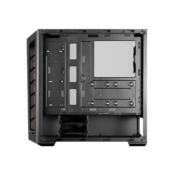 Con un panel frontal transparente de borde a borde, la MasterBox MB520 es una caja elegante y moderna para su construcción. Además del aspecto sorprendente, esta carcasa de la torre intermedia también tiene capacidad para componentes de gran tamaño, cuenta con una cubierta inferior para ocultar la fuente de alimentación y los cables, y tiene un amplio espacio detrás de la bandeja de la placa base para organizar los cables. Con un precio asequible, la MasterBox MB520 es una excelente opción para sus equipos.