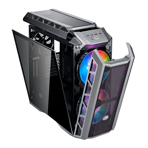 Todo sistema de juego serio requiere una cantidad sustancial de flujo de aire. No solo para plataformas recién construidas, sino también para actualizar hardware en el futuro. El MasterCase H500P Mesh ARGB fue diseñado exactamente para eso. Ahora, con dos ventiladores ARGB de 200 mm, la iluminación direccionable premium viene preinstalada, una actualización marcada. La malla se extiende por todo el frente para proporcionar un camino sin restricciones para el aire, alimentado a los dos ventiladores masivos detrás del panel. Ya sea que el método preferido sea el enfriamiento extremo por agua o por aire, el MasterCase H500P Mesh ARGB ofrece versatilidad, rendimiento y personalización con la iluminación ARGB para arrancar. Dos capas de malla conforman todo el panel frontal para maximizar el flujo de aire. Una capa más fina filtra el polvo mientras que la malla de acero refuerza su estructura. Los ventiladores ARGB preinstalados se pueden administrar mediante la placa base o un controlador incluido, conectado por el divisor incluido, para crear un sistema de iluminación ARGB completo. El hardware de juego, el enfriamiento de bucle personalizado se muestra en una vista panorámica a través de un panel lateral de vidrio templado de borde a borde. El pequeño controlador ARGB es un controlador de tamaño mini que permite alimentar y controlar tus RGB direccionables, como ventiladores y tiras de LED, incluso en sistemas de PC sin una placa base compatible con A-RGB. El controlador viene con 14 preajustes de iluminación para hacer un uso completo de los LED direccionables en el sistema y también permite apagarlo completamente presionando prolongadamente su botón. También es posible adjuntar cualquier botón externo de 2 pines para poder cambiar los ajustes preestablecidos sin tener que abrir el sistema. Para facilitar su uso, Cooler Master permite que el botón RESET se conecte opcionalmente al controlador y se use como un botón de interruptor preestablecido ARGB externo.