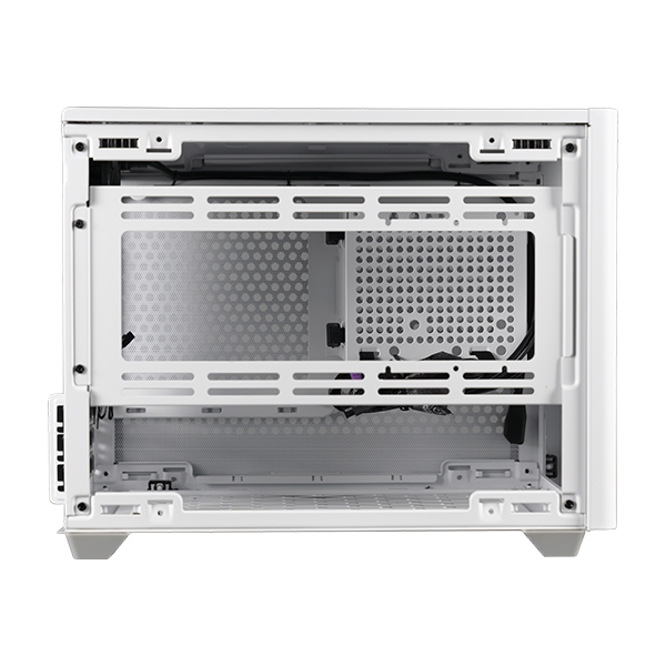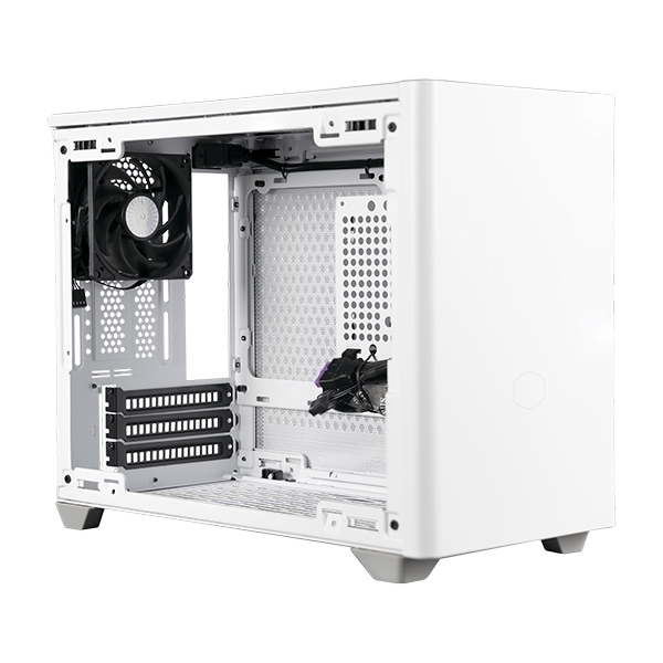 La MasterBox NR200 tiene todas las características que se encuentran en un chasis ATX de rendimiento básico y las utiliza de manera eficiente en un espacio de menos de la mitad del volumen. Todas las características están cuidadosamente dispuestas en la caja de 18 litros para maximizar la compatibilidad de los componentes, la facilidad de uso y la eficiencia térmica. La ventilación abierta y los múltiples soportes para ventiladores llevan el flujo de aire allí donde se necesita, mientras que los generosos espacios para la refrigeración por agua y por aire permiten la instalación de refrigeradores que pueden aprovechar todo el flujo de aire. El amplio espacio para las tarjetas gráficas largas de triple ranura significa que no es necesario sacrificar la potencia de la GPU para aprovechar el tamaño del factor de forma pequeño. La estructura está envuelta en un chasis de acero elegante y de buen gusto que se integra perfectamente en la parte superior del escritorio.