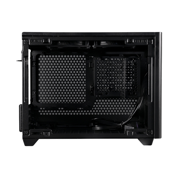 La MasterBox NR200P tiene todas las características que se encuentran en un chasis ATX de rendimiento básico y las utiliza de manera eficiente en un espacio de menos de la mitad del volumen. Todas las características están cuidadosamente dispuestas en la caja de 18 litros para maximizar la compatibilidad de los componentes, la facilidad de uso y la eficiencia térmica. La ventilación abierta y los múltiples soportes para ventiladores llevan el flujo de aire allí donde se necesita, mientras que los generosos espacios para la refrigeración por agua y por aire permiten la instalación de refrigeradores que pueden aprovechar todo el flujo de aire. El amplio espacio para las tarjetas gráficas largas de triple ranura significa que no es necesario sacrificar la potencia de la GPU para aprovechar el tamaño del factor de forma pequeño. La estructura está envuelta en un chasis de acero elegante y de buen gusto que se integra perfectamente en la parte superior del escritorio.