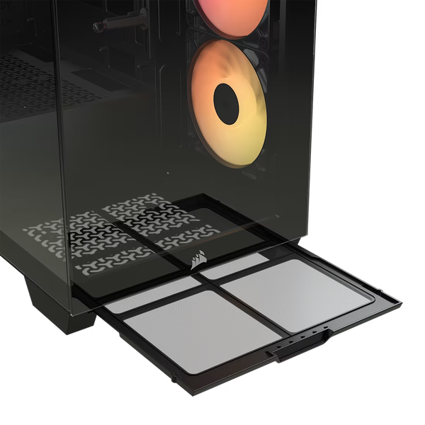 La Corsair 3500X RS-R ARGB negra es un chasis semitorre que ofrece una vista panorámica de cristal templado con paneles frontales y laterales extraíbles, permitiendo mostrar el hardware y acceder al interior con facilidad. El diseño versátil admite placas base hasta E-ATX, tarjetas gráficas de gran tamaño y refrigeradores de CPU de alto rendimiento sin ocupar demasiado espacio. Incluye 3 ventiladores RS120-R ARGB con rotor inverso, tecnología AirGuide y rodamientos magnéticos, proporcionando una refrigeración silenciosa y potente, junto con iluminación ARGB vibrante y conexión en cadena para un montaje sencillo. El sistema InfiniRail permite ajustar los ventiladores superiores y laterales para optimizar el flujo de aire según sus necesidades.