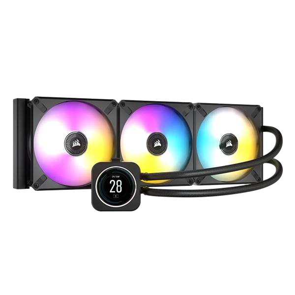 El refrigerador CORSAIR iCUE H170i ELITE LCD Display Liquid CPU ofrece una refrigeración potente y personalizada para los diseños de PC más ambiciosos, con una pantalla LCD personalizada y tres ventiladores PWM CORSAIR ML140 RGB ELITE de última generación.