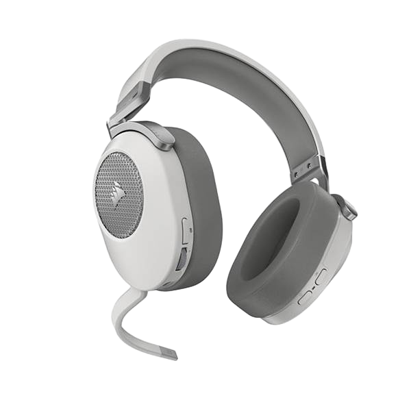 Los auriculares para juegos CORSAIR HS65 WIRELESS combinan audio inalámbrico de baja latencia a 2,4 GHz, Bluetooth y sonido envolvente Dolby Audio 7.1 inalámbrico de 2,4 GHz en PC con un diseño ligero reforzado con aluminio.