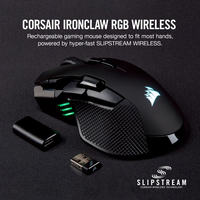 El ratón de juego CORSAIR IRONCLAW RGB WIRELESS combina un sensor óptico de 18 000 ppp nativos con un cómodo agarre para la palma. Puede conectarlo fácilmente al PC a través de una tecnología ultrarrápida, la TECNOLOGÍA SLIPSTREAM CORSAIR WIRELESS en menos de 1 ms, Bluetooth o conexión por cable USB.