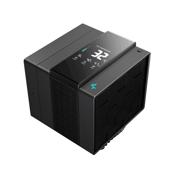 El añadido más destacado es la pantalla cuádruple segmentada mejorada que controla la temperatura, el uso, y la frecuencia de tu CPU. El panel digital está magnetizado, así que la instalación y sus ajustes son extremadamente simples. La pantalla es controlada a través del software de DeepCool, que solo necesita un conector USB 2.0. Su instalación es sencilla, gracias a su estructura cuidadosamente diseñada y a su cubierta superior magnética para el ventilador. Los tubos de calor distribuyen el calor de manera uniforme a través de las torres de aletas, y la pasta térmica DM9 incluida cumple con estándares industriales para un enfriamiento óptimo.