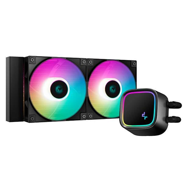 La Deepcool LE 520 Black 240 ARGB es una refrigeración líquida diseñada para ofrecer una excelente disipación térmica juntamente con una preciosa estética para sistemas de alto rendimiento. Cuenta con ventiladores ARGB de alto rendimiento, proporcionando un flujo de aire de 85.85 CFM y una presión estática de 3.27 mmAq, con velocidades entre los 500 y los 2250 RPM, además al contener iluminación ARGB, en los sistemas con chasis de cristal templado, podrán verse y modernizarán tu PC. La placa fría de cobre engrosada mejora la conductividad térmica, permitiendo una rápida absorción del calor que genera el procesador. El bloque de agua de microcanal optimiza el flujo del refrigerante para una transferencia de calor más efectiva. Este sistema es capaz de manejar un TDP de hasta 220 W.