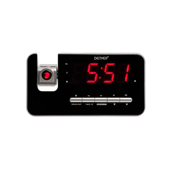 Te presentamos el despertador de Denver CRP-618 despiértate con la Radio FM y visualiza la hora en la pared gracias a la proyección de reloj de este magnífico despertador.