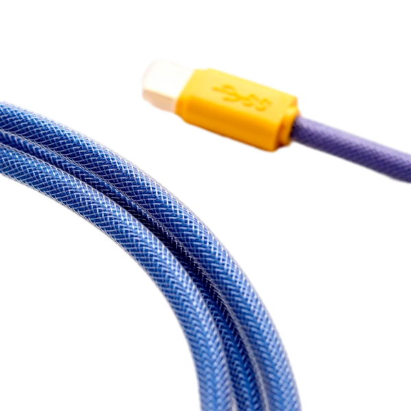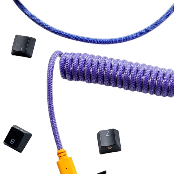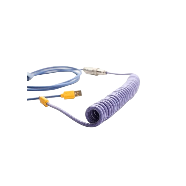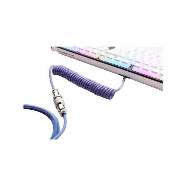 El cable en espiral Ducky Premicord es lo más nuevo en cables personalizados para tu teclado. Dale un toque original a tu teclado gracias a este cable con un diseño único y elegante. Ducky Premicord cumple las más altas exigencias de protección gracias a la funda de nylon flexible. Incluye una clavija de conexión desenchufable tipo aviador de 5 puntas. Es apto para cualquier tipo de teclado con conexión USB C. Largo 1,8 metros. conexión USB 2.0. Cable bicolor Azul Violeta. Conectores en color amarillo.