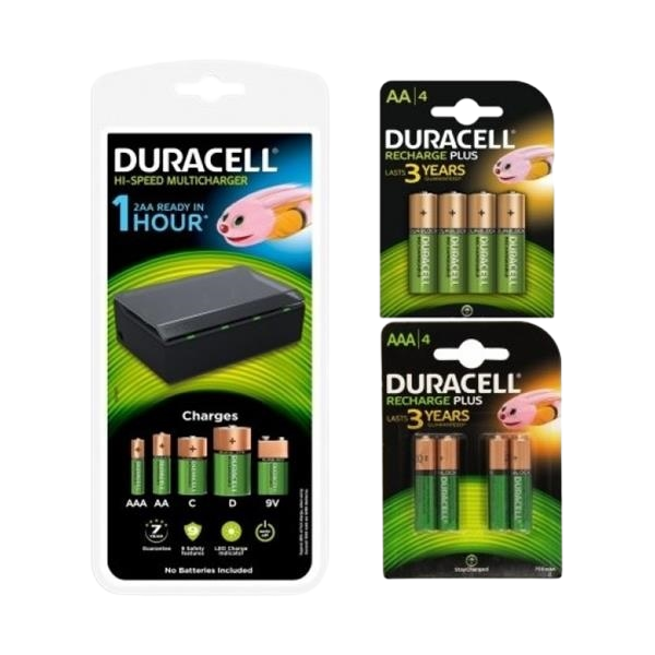 Duracell Pack Cargador + 4 Pilas AA 1300mAh y 4 AAA 750mAh
