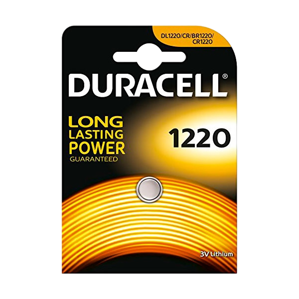 Las pilas de botón de litio Duracell Specialty 1220 son baterías de las que te puedes fiar. Fiables y duraderas, son las pilas que más a menudo se usan para alimentar los dispositivos médicos (glucómetros, pulsómetros), los aparatos de seguridad (lectores de tarjetas bancarias) y otros equipos electrónicos (relojes de pulsera, radiodespertadores, podómetros y más). La tecnología Duralock guarda la carga eléctrica de la batería durante un máximo de 10 años en almacenamiento.