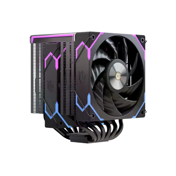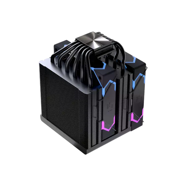El Einarex Glide G300 RGB LCD Doble Ventilador es un disipador de CPU de alto rendimiento diseñado para mantener su procesador en temperaturas óptimas incluso bajo cargas intensas. Se trata de un refrigerador por aire con 2 ventiladores de 120 mm que ofrecen un flujo de aire máximo de 74,22 CFM y una presión de aire de hasta 4,42 mmH2O, con velocidades que van desde 800 hasta 2600 RPM y control PWM para un enfriamiento preciso y silencioso. El diseño en negro combina aluminio y cobre, con una base de cobre para una mejor disipación térmica y un radiador de aluminio resistente. Está equipado con 6 tubos disipadores de calor que maximizan la transferencia térmica desde el procesador, asegurando eficiencia incluso en CPUs de alto rendimiento.