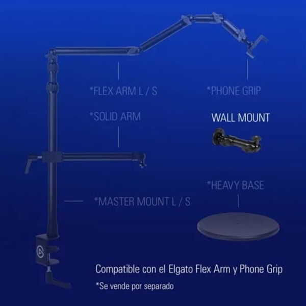 Una montura permanente para instalar en la pared, pero flexible para los periféricos de tu estudio. Luces, cámaras y cualquier dispositivo con rosca de 1/4 de pulgada.