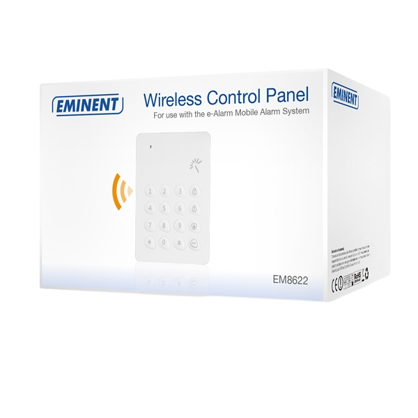 El teclado numérico EM8622 está diseñado para el Sistema de Alarma Inalámbrico EM8610/EM8615 de Eminent. Coloque el teclado numérico cerca de su puerta delantera/trasera. Active y desactive el sistema de alarma con el teclado numérico. Pase una tarjeta RFID por delante del teclado numérico para desactivar la e-Alarm.