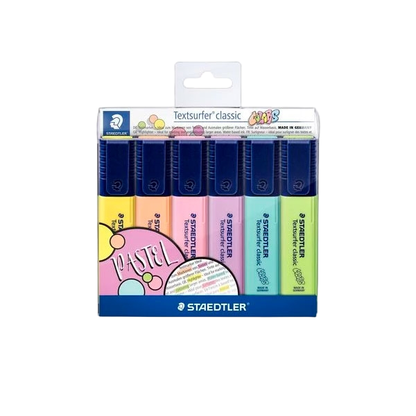 Paquete de 6 marcadores fluorescentes Staedtler Textsurfer Classic Pastel & Vintage. En colores surtidos. Punta biselada.