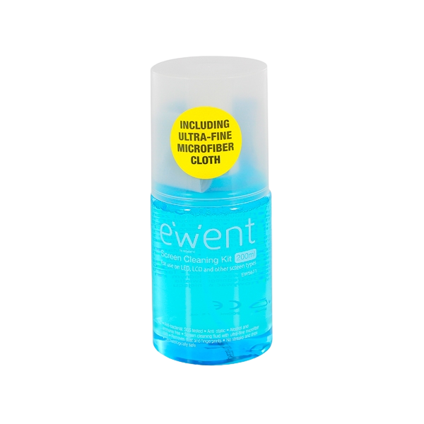 Ewent EW5671 Líquido 200ml + Paño de Microfibra 20x20cm – Kit de Limpieza para Pantallas