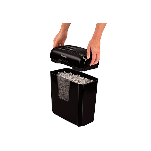 Destructora de papel Fellowes 3C. Destruye hasta 6 hojas de papel en partículas de 4 x 35 mm, nivel de seguridad (DIN P-4). Bloqueo de seguridad para evitar accidentes. Ciclo de trabajo de 3 minutos. Cabezal extraíble para vaciar la papelera de 11 litros de capacidad. Destruye clips, grapas y tarjetas de crédito. 2 años de garantía en la máquina y 3 en las cuchillas de corte.
