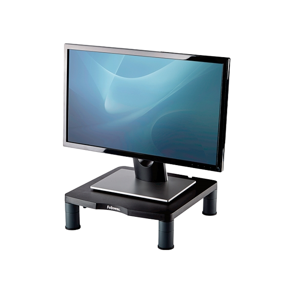 Soporte Fellowes para monitor estándar Grafito. Fabricado a partir de plástico 100% reciclado. Certificado por FIRA International Ltd para cumplir con los requisitos ergonómicos establecidos en la legislación europea de salud y seguridad: EN ISO 9241-5.