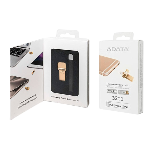 ADATA i-Memory AI920 – Unidad flash USB – 32 GB – USB 3.1 / Lightning – oro
