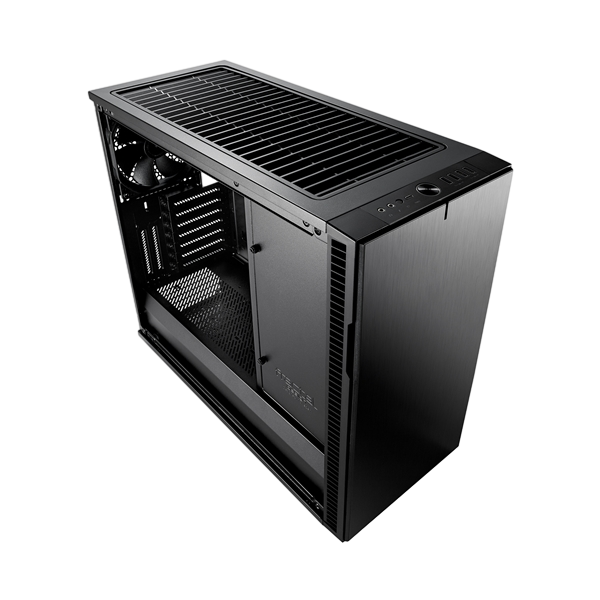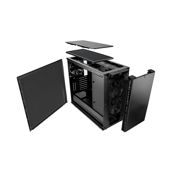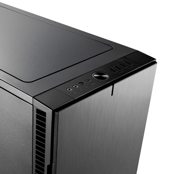 Los paneles de acero con amortiguación acústica y un elegante mecanismo de bloqueo de empuje para bloquear encierran un interior completamente rediseñado con soporte de componentes y flexibilidad de almacenamiento sin precedentes. Se pueden instalar seis unidades de 3.5 "/ 2.5" y dos unidades de 2.5 "con ubicación precisa en innumerables configuraciones en todo el gabinete. El marco espacioso y totalmente adaptable del Define R6 tiene nueve soportes para ventilador, un cubo de ventilador PWM integrado y soporte para radiadores de hasta 420 mm, lo que lo convierte en la plataforma perfecta para construir el circuito de agua de sus sueños. La tecnología ModuVent ™ mejorada de tercera generación permite una transición sin esfuerzo desde el panel superior amortiguado con sonido revestido de acero a la configuración de ventilación de ventilador múltiple de alto flujo de aire filtrado.