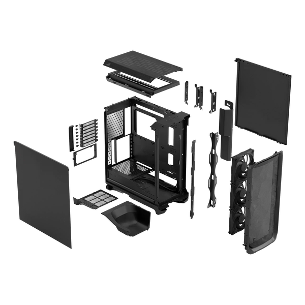 La Fractal Design Meshify 3 Light Tint es una caja E-ATX de alta gama diseñada para ofrecer un flujo de aire excepcional y una estética moderna con paneles de vidrio templado y acabado negro. El frontal en malla optimiza la entrada de aire, mientras que la ventana lateral permite mostrar los componentes internos de forma elegante. Esta caja combina robustez y funcionalidad, siendo ideal para setups gaming o estaciones de trabajo donde se busca una solución completa y versátil. En refrigeración, viene equipada con 3 ventiladores frontales de 140 mm y soporte para un total de hasta 6 ventiladores, permitiendo la instalación de radiadores de hasta 360 mm en el frontal y 280 mm en la parte superior. La disposición inteligente de los filtros antipolvo y la malla frontal facilita un mantenimiento sencillo y protege los componentes, manteniendo temperaturas óptimas incluso en configuraciones exigentes.