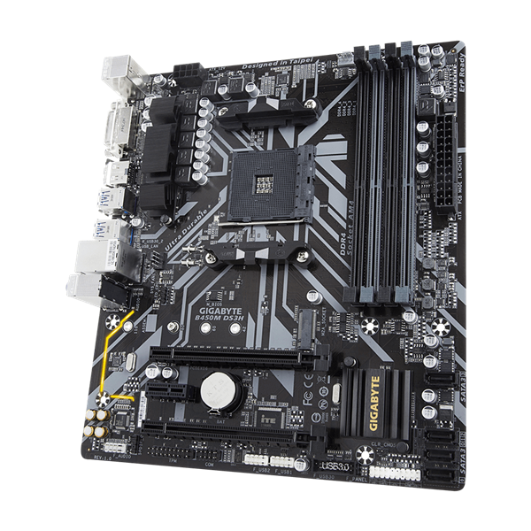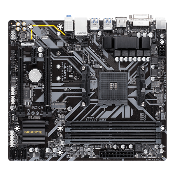 Esta placa madre está equipada con el BIOS UEFI de Gigabyte, el cual permite actualizaciones desde el sistema operativo para facilitar la gestión de la placa base. Incluye un códec Realtek ALC892, puertos USB (tanto USB 3.1 Gen 1 como USB 2.0), para periféricos, y conectores de video (VGA y HDMI) para poder hacer uso de monitores o televisiones sin necesitar de una tarjeta gráfica. Cuenta con un sistema de refrigeración gracias al disipador para el VRM (Voltage Regulator Mode) para ayudar a mantener unas temperaturas estables durante largas sesiones de uso. Ofrece soporte para overclocking de CPU y memoria para permitir maximizar el rendimiento del procesador y de la RAM. Cuenta con un formato micro ATX que hace que sea más pequeña () y sea ideal para equipos compactos.