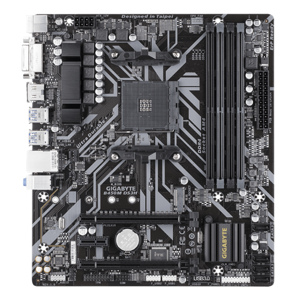 La Gigabyte B450M-DS3H Wifi DDR4 es una placa base de formato micro ATX que está diseñada para ofrecer un sólido rendimiento en gaming y uso diario. Su chipset es el AMD B450, el cual soporta procesadores Ryzen de 1ª, 2ª y 3ª generación. Cuenta con un soporte para memoria DDR4 de hasta 2933 MHz sin hacer uso del overclocking y 64GB en total. Destaca por la inclusión de Wifi 5 (802.11ac), haciendo que sea compatible sin necesidad de añadirle una tarjeta. La B450M-DS3H ofrece una amplia cantidad de opciones de expansión, cuenta con 2 ranuras PCIe x16 (una PCIe 3.0 y la otra PCIe 2.0, ideal para tarjetas gráficas o de expansión), 2 ranuras PCIe x1 (ideal para añadir tarjetas adicionales como sonido), 6 puertos SATA III (para discos duros y SSD's) y 1 puerto M.2 (para SSD de alta velocidad).