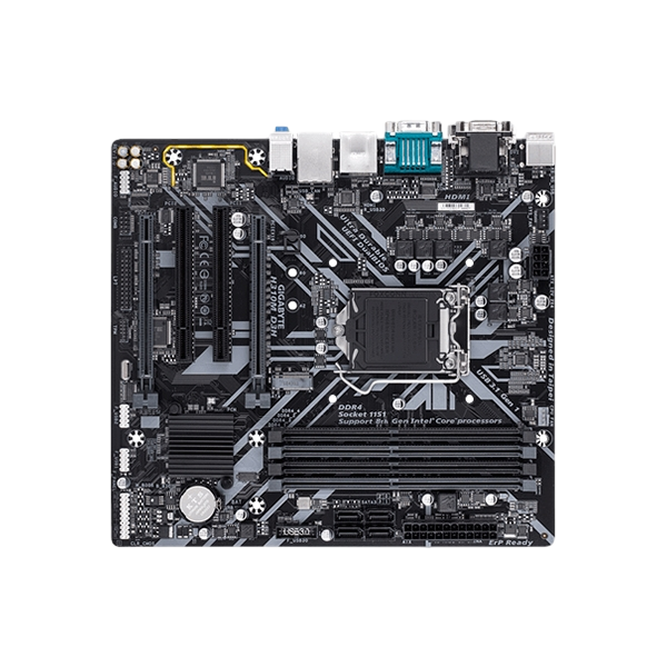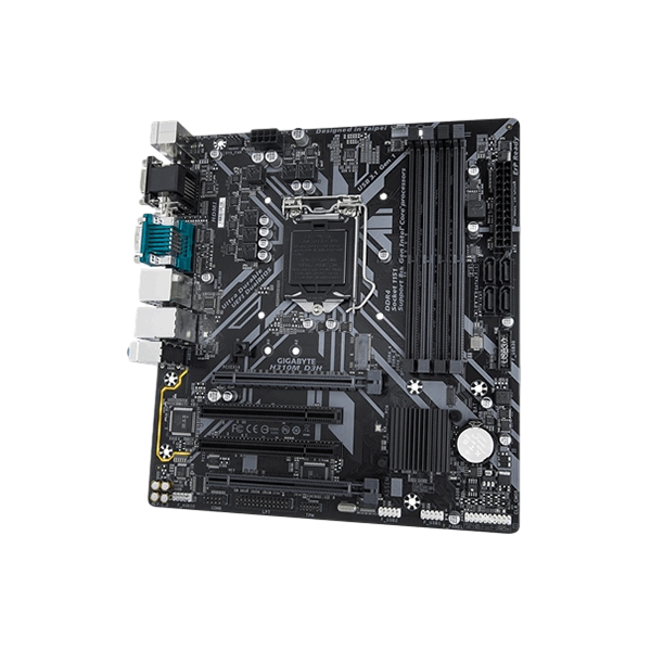 Con soporte para procesadores Intel de novena y octava generación, la Gigabyte H310M D3H es una placa micro ATX que aprovecha cada centímetro de su superficie para ofrecerte lo mejor del chipset H310: cuatro ranuras de ram para un total de hasta 64GB DDR4, DisplayPort, HDMI, DVI, VGA, capacidad de multipantalla, GBLAN, 4 puertos SATA… Tiene también un puerto serie, antiguo, pero necesario en algunos casos.
