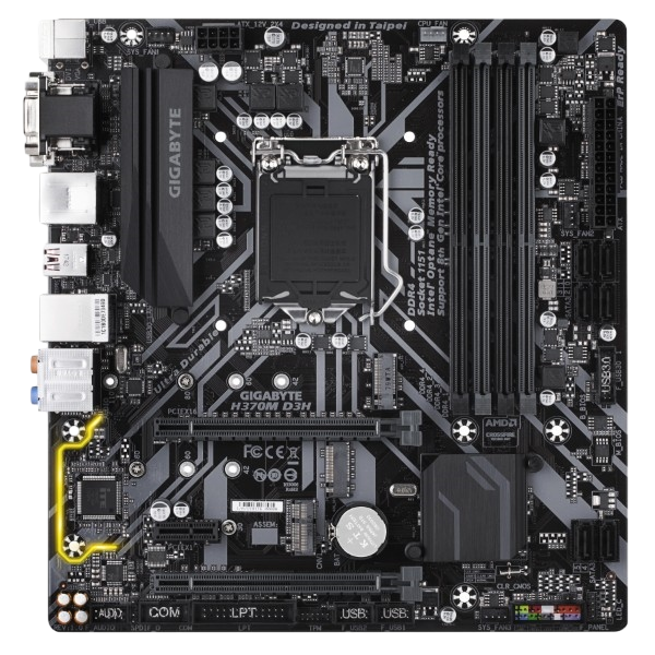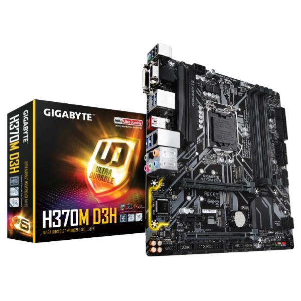 La placa base micro ATX H370M D3H es ideal para equipos de tamaño reducido destinados tanto a gaming como a ejecutar programas profesionales. Es compatible con procesadores Intel de 8ª y 9ª generación ya que tiene un socket 1151, y en sus 4 bancos de memoria soporta un máximo de 64GB de ram DDR4 a 2666MHz. Gracias al nuevo chipset H370, la placa viene equipada con multitud de conexiones interesantes, como por ejemplo: 2 conectores M.2 Socket 3 (compatibles con SSD PCIe), 6 puertos SATA 6Gb/s, HDMI, DVI, VGA y 2 puertos USB 3.1 Gen 2. Gracias a sus 2 puertos PCIe x16 y su puerto PCIe x1, soporta configuraciones de múltiples gráficas de hasta AMD CrossFireTM de dos direcciones. Para una conexión a internet más estable incorpora una tarjeta de red Intel GBLAN. Gigabyte ha creado un diseño con lineas elegantes para esta placa, que además tiene zonas con iluminación RGB totalmente personalizable.