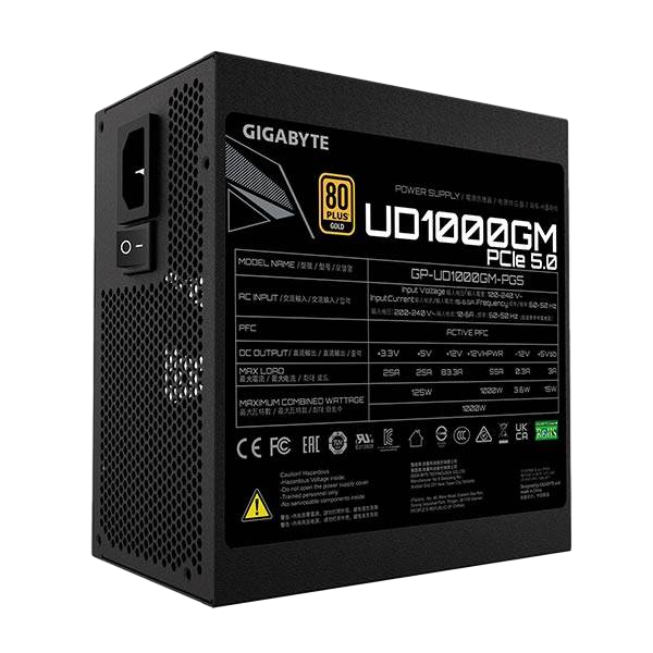 La Gigabyte UD1000GM PG5 1000W es una fuente de alimentación de alto rendimiento especialmente diseñada para PCs gaming, estaciones de trabajo profesionales y sistemas exigentes. Con una potencia total de 1000 W, esta PSU es capaz de soportar configuraciones avanzadas con múltiples tarjetas gráficas, procesadores de última generación y overclocking, garantizando un suministro de energía estable y confiable incluso bajo cargas máximas y sesiones prolongadas de uso intenso.