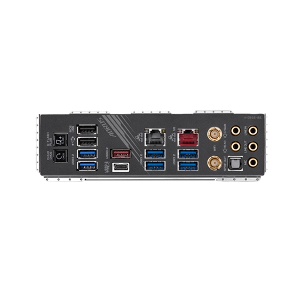 1 x Q-Flash Plus button 1 x botón para limpiar la CMOS 1 x USB Type-C™ port, with USB 3.2 Gen 2 support 1 x USB 3.2 Gen 2 Type-A port (red) 6 x USB 3.2 Gen 1 ports 2 x puerto USB 2.0/1.1 2 x puerto RJ-45 2 x conectores de antena SMA (2T2R) 1 x optical S/PDIF Out connector 5 x audio jacks
