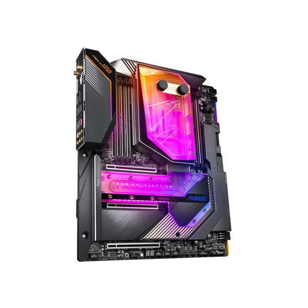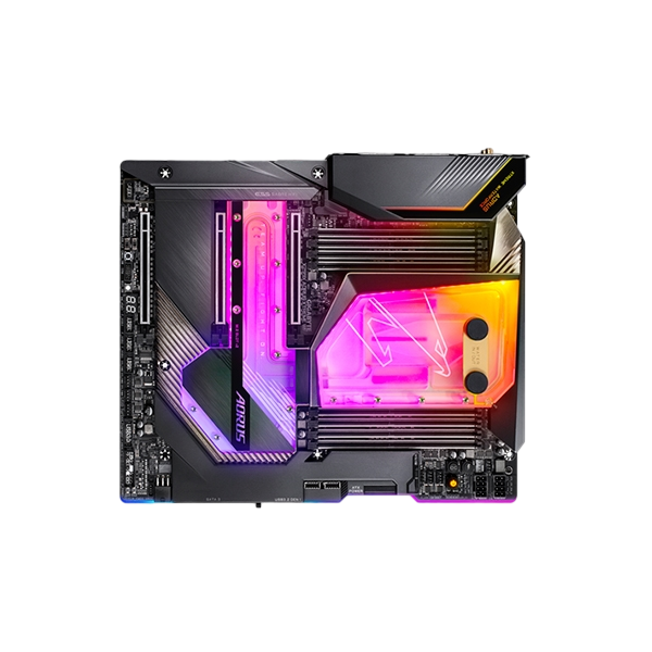 Solamente unos pocos elegidos podrán hacerse con la Gigabyte X299X Aorus Xtreme WaterForce. Esta placa es una auténtica maravilla, tanto en su diseño, como en sus prestaciones, las cuales parecen salidas de otro planeta. Su precioso sistema de monoblock está pensado para acoplarlo a una refigeración líquida customizada y que el líquido fluya a través de sus oquedades, refrigerando los componentes esenciales de la placa y el procesador. Este bloque cuenta con iluminación RGB que lo hace irresistible a la vista. Te animamos a que revises su ficha técnica, porque son muchas las bondades que tiene. Estamos seguros de que no te defraudará, ¡es una bestia!