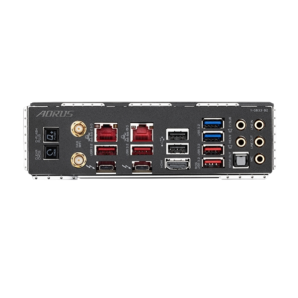 1 x botón Q-Flash Plus 1 x botón para limpiar la CMOS 2 x conectores de antena SMA (2T2R) 2 x Thunderbolt™ 3 connectors (USB Type-C™, with USB 3.2 Gen 2 support) 4 x USB 3.2 Gen 2 Type-A (rojo) 2 x USB 3.2 Gen 1 2 x puerto USB 2.0/1.1 1 x HDMI 2 x puerto RJ-45 1 x conector óptico S/PDIF Out 5 x audio jacks