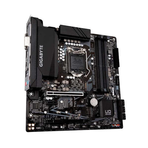Placa madre Intel® Z590M GAMING con VRM digital directo de 12 + 1 fases con DrMOS, diseño Full Gen4, diseño térmico totalmente cubierto con armadura IO integrada, PCIe 4.0 M.2 con protección térmica, LAN para juegos de 2,5 GbE, audio HD de 8 canales con audio Tapas, USB 3.2 Gen2 TYPE-C®, RGB FUSION 2.0, Q-Flash Plus