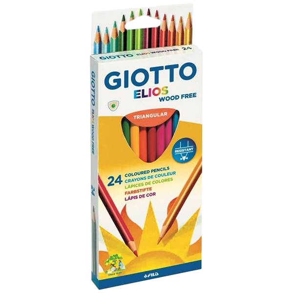 Giotto Elios Giant Wood Free Pack de 24 Lapices Triangulares de Colores – Sin Madera – Mina 5 mm – Colores Surtidos