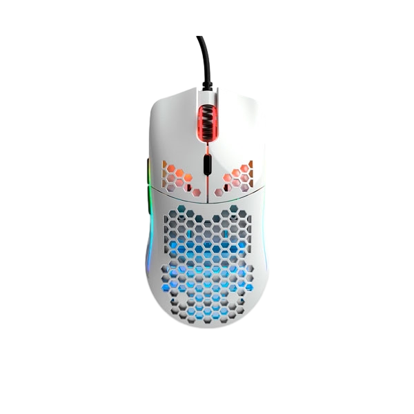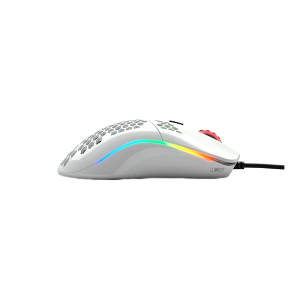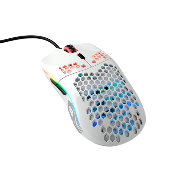Glorious PC Gaming Race Model -O White Glossy tamaño pequeño (Small) con RGB. Los ratones Glorious PC Gaming Race Model -O con iluminación RGB con considerados los ratones más ligeros del mundo con un peso de tan solo 58 gramos en el modelo mate y 59 gramos en el modelo brillante glossy.
